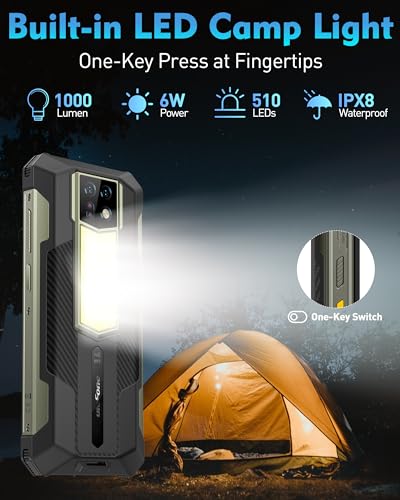 Ulefone Armor 24 Outdoor Handy, 22000mAh Akku 1000LM Camping Licht, Android 14 Outdoor Smartphone 24GB+256GB/SD-2TB, 64MP+64MP Kamera, 120Hz 6,78″ FHD+, IP68 Smartphone 4G Dual SIM/NFC/OTG/GPS