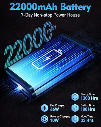 22000mAh Battery + 66W Fast Charging + OTG:Ulefone armor 24 outdoor handy ohne vertrag ist ein unzerbrechliches Mobiltelefon mit einem 22000mAh Akku, der 1300 Stunden Standby-Zeit und 100 Stunden Sprechzeit bietet. Mit 66W Schnellladung und OTG Reverse-Charging-Unterstützung, bietet es Backup-Strom für Bluetooth-Headsets, Smartphones und Laptops.