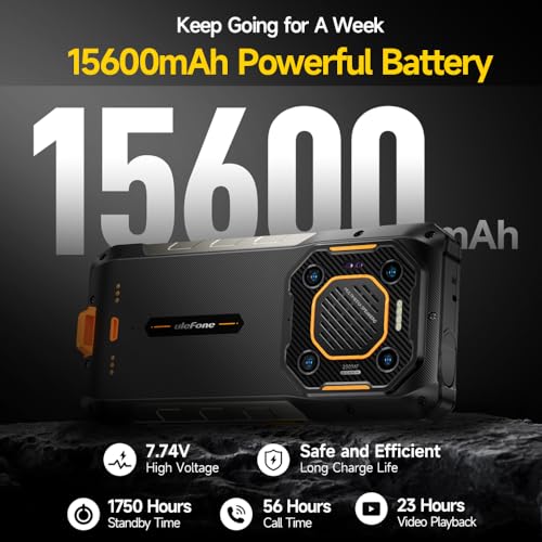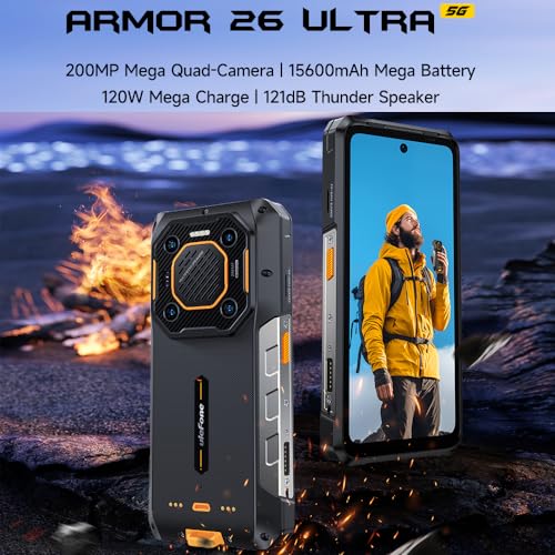 🔋【120W Fast Charging+15600mAh+OTG】Ulefone Armor 26 Ultra Smartphone haben 15600mAh Akku treibt das Handy mit 240 Stunden Standby-Zeit.120W schnelles Aufladen, in daher 10 Minuten, erreichen einen 60% Akkustand.Das Ladegerät unterstützt PD (PPS) Protokoll, verfügt über Typ-C-Kabel, und kann das Phone schnell aufladen. Es außerdem wird OTG Reverse Charging für Smartphones, Laptops, etc. unterstützt.