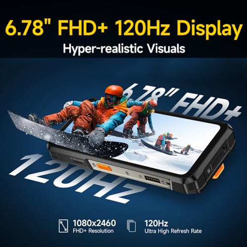 📱【6.78″ FHD+ Display & Corning Gorilla Glas 5】Ulefone Armor 26 Ultra Rugged Telefon tragen 6.8″ FHD+ Display, 2408*1080 Demontage Bildschirm hat 120Hz frische Rate integriert, machen das Abdruck lebendiger und gesünder. Das Display aus Gorilla Glass 5 setzt neue Maßstäbe beim Schutz vor Sturzschäden und seine Schutzleistung ist hervorragend. Außerdem wurde die Kratzfestigkeit um das bis zu 2-fache verbessert.