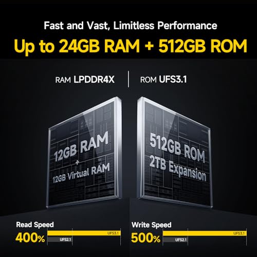 🚀【MTK Dimensity 8020 5G Smartphone & 24GB RAM+512GB ROM】Ulefone 23 Ultra Smartphone wird durch 6nm Produktionsprozess behandelt, Octa-Core MTK Dimensity 8020, begleitet von der Arm Mali-G77 GPU Leistung für Armor 23 Ultra in Spielen und Apps. 12GB RAM+512GB ROM großer Speicher kann RAM bis zu 24GB erweitern (mit 12GB virtuellem RAM), was Ihre RAM-intensiven Spiele oder Multitasking mehr als mühelos und butterweich macht.Mit 512GB ROM, können Sie mehr Fotos, Videos in See stechen.