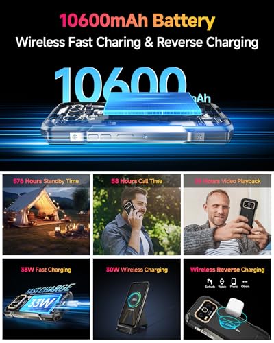 【10600mAh Akku + 33W Schnellladung + Festkörperbatterie mit Tiefstwerten】Embrace weniger stromhungrig mit einer Mega-Kapazität von 10600mAh, im Unterschied dazu in ununterbrochenen Gaming und Streaming-Videos. Geeignet für Geschäftsreisen oder andere Outdoor-Aktivitäten, bietet 576 Stunden Standby-Zeit, 58 Stunden Gesprächszeit, 20 Stunden Video. Schnelles Aufladen und vollständiges Aufladen in kürzerer Zeit dank 33W Schnellladung.