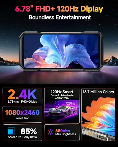 【6,78“ FHD+ 120Hz Display & Corning Gorilla Glass】Der 6,78 Gebühr große Bildschirm mit einer Demontage von 1080 x 2460 Pixeln bietet ein beeindruckendes Multimedia-Erlebnis. 120Hz ultrahohe Bildwiederholrate macht jede Bewegung glatt und flüssig. Der Bildschirm aus Corning Gorilla Glass ist 4-fach kratzfest und kann Stürze aus bis zu 2 Metern Höhe überstehen, um Schäden oder Brüche durch Kratzer, Stürze und Stöße zu verhindern.