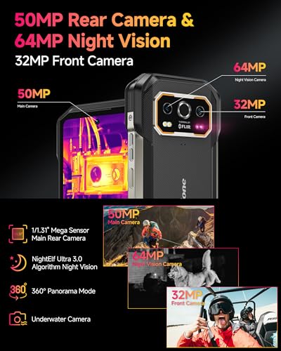 Ulefone Armor 27T Pro 5G Outdoor Handy Wärmebildkamera, 24GB+256GB 10600mAh Outdoor Smartphone Ohne Vertrag Android 14, 50MP+64MP Nachtsicht 6,78“ 120Hz Smartphone Dual SIM/NFC/Fingerabdruck/Face ID