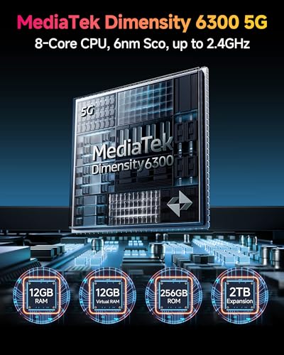 【24GB RAM+256GB ROM/SD-2To & 5G MediaTek Dimensity 6300 & Android 14】Angetrieben durch den MediaTek Dimensity 6300 6nm Soc, bewältigt Armor 27T Pro smartphone mit seiner 8-Kern-CPU und der fortschrittlichen Arm Mali-G57 MC2 GPU perfekt alltägliche Multi-Tasks und leichtes bis schweres Gaming. Mit bis zu 24GB Arbeitsspeicher. 256GB interner Speicher und eine microSD-Karte mit bis zu 2TB (nicht im Lieferumfang enthalten) sorgen für massenhaft Platz zum Ablegen von Apps, Fotos, Videos und Dateien.