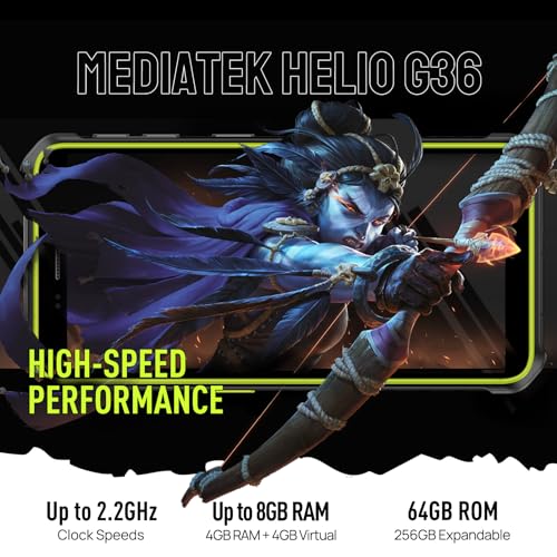 💾【8GB+64GB & Octa-Core-Prozessor】Der Ulefone Armor X12 Pro 4G Outdoor Handys ist mit dem leistungsstarken MediaTek Helio G36 Octa-Core-Prozessor ausgestattet. Mit Taktraten bis zu 2,2 GHz garantiert dieses Chipset ein flüssiges und reaktionsfähiges Handling – ohne den Akku zu überstrapazieren. 8 GB RAM (4 GB + 4 GB Virtual) garantieren schnelles Multitasking, während 64 GB interner Speicher, erweiterbar auf bis zu 256 GB, viel Platz für Ihre Daten bieten.