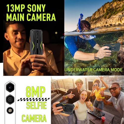 📷【13MP+8MP】Der Ulefone Armor X12 Pro Outdoor Smartphone ohne vertrag ist mit einer 13-Megapixel-Hauptkamera mit Sony IMX214-Sensor ausgestattet, um atemberaubende Fotos in perfekter Klarheit und Detailreichtum zu ermöglichen. Mit einer 8-Megapixel-Selfie-Kamera gelingen beeindruckende Selfies zu aus Zeit. Verschiedene Modi wie Nachtsicht, Schönheitsfilter, Zeitraffer und Unterwasserfunktion erhöhen Ihre kreative Freiheit.