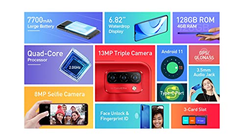 Ulefone Note 12 Smartphone ohne Vertrag, 4GB + 128GB, 7700mAh Massiver Akku DUAL-SIM-4G Handy, 6,82“ HD+, 3-Karten Slot Design, Android 11, 13MP Triple Kamera, Gesichts Entsperrung GPS Schwarz