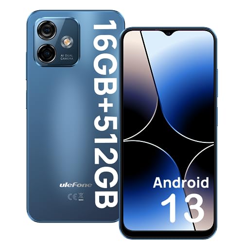Ulefone Note 16 Pro Handy, 16GB + 512GB Android 13 Smartphone Ohne Vertrag 4400mAh mit 50MP Kamera 6,52 Zoll HD+ 5 Ghz WiFi Dual SIM/Face ID/4G/GPS/OTG/2 Jahre Garantie Blau