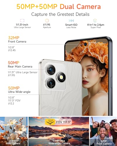 ✨50MP+50MP+32MP Kamera: Schreiben 18 Ultra Handy ohne Abkommen ausgestattet mit 50MP Rückseitenkamera bis F/1.95 Blende bietet eine außergewöhnliche Sicht, die Ihnen hilft, ungewöhnliche Schönheit zu entdecken und jeden schönen Moment für immer festzuhalten. Die Weitwinkelobjektive des Schreiben 18 Ultra verfügen über ein großes Sichtfeld von 117,3°. Egal, ob Sie Landschaften, Berge oder architektonische Strukturen einfangen, es zeichnet sich durch die Erstellung detaillierter und umfassender Fotos aus.