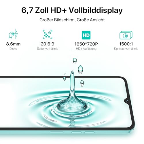 【6,7″ Wassertropfen-Bildschirm】Das UMIDIGI A15 Mobiltelefon verfügt über einen 6,7″ großen Bildschirm mit einer Zersplitterung von 1650 x 720 Pixeln und lebendigen Farben, was sowohl das Spielen als alias das Schätzung von Videos zu einem ausgezeichneten Erlebnis macht.Das vertragsfreie Android Mobiltelefon A15 unterstützt den Augenschutzmodus. Egal, ob Sie Student, Geschäftsmann oder Rentner sind, das A15 wird Ihre Smartphone-Bedürfnisse absolvieren.