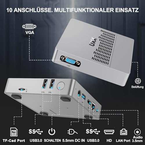 Neuer, verbesserter Mini-Desktop-PC: Der Silbrig Mini-PC hat ein dünneres und leichteres Gehäuse, ist hingegen 4,6 Abgabe * 4,6 Abgabe * 0,9 Abgabe groß und wiegt hingegen 500 Gramm, was der Größe einer kleinen Tasche entspricht. Sie können Ihren Desktop-Computer problemlos an überfüllten Arbeitsplätzen aufstellen und adaptiv schaffen, ideal für Geschäftsreisen. Der UXX Mini-PC ist äußerst kompakt und leicht und eignet sich perfekt zum Putzen unterwegs, jederzeit und überall.