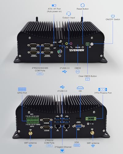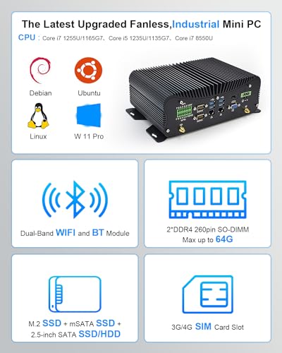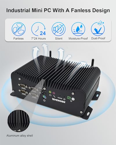 VENOEN Industrieller Mini PC Core i7 1165G7, lüfterlos PC I7, i225 2.5Gbe LAN, W 11 Pro, 16GB RAM 512GB SSD, RS232/RS485/RS422 COM, GPIO, HD, VGA, USB3.0, SIM-Slot, Dual Band WiFi, BT4.2, Rugged Case