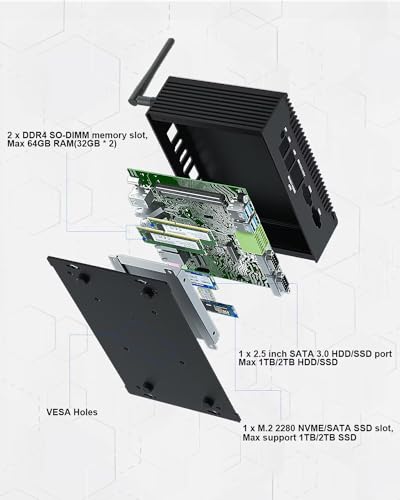 【Ultra Large Expended Storage】Mini Desktop Computer mit Dual-Channel DDR4 Memory Slots, bis zu 64GB. Ausgestattet mit einem 1x M.2 SATA/NVME SSD Slot und einem 1x 2.5-Zoll SATA 3.0 HDD/SSD Slot, nur 8.1*5.0*2.3 Zoll klein und leicht Gehäuse, können Sie es überall tragen. Befriedigung Ihrer verschiedenen Szenarien Gebrauch, Büro, Industriedesign, Lichtspiele, Bildung, etc. Lassen Sie sich von VENOEN Mini-PC fanless an die Spitze Ihrer Karriere begleiten.