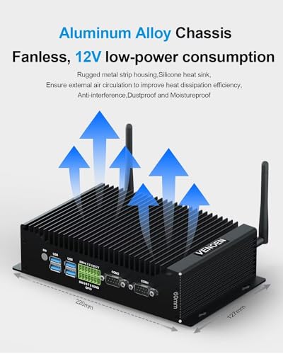 VENOEN Mini PC Lüfterlos i7 WIN11 Pro, Indutrie Computer Core i7 10810U, 16GB DDR4 512GB SSD, Dual HD+DP 3 Display, 2xRS232/485 COM, GPIO, WiFi,BT 5.1, Dual Gigabit LAN Indutrial PC 4G SIM Slot