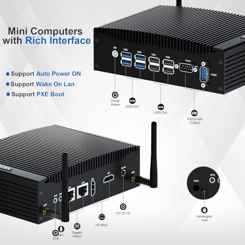Langlebig und Leistungsstark ➥ Fanless PC i5 WIN11 Pro mit Dual LAN, Dual HDOutput, Dual RS232 COM, 4x USB 3.0, 4x USB 2.0, 1x Kinsinton Hole, SPK/MIC, 12V DC IN, Aluminiumlegierung Gehäuse Wärmeableitung, KEINE FAN, KEINE Geräusche, KEINE DUST. Brauchbar für verschiedene raue Umgebungen, wie das IOT, Medizinische Geräte, Billboard, Kiosk usw. Der Industrial Mini-PC unterstützt häufig verwendete Wake-up-LAN und Atuo Power On, wodurch es einfach zu installieren ist.