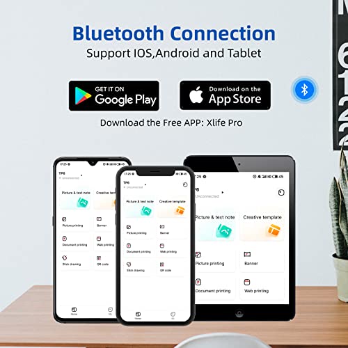 Pocket Mobile Printer mit leistungsstarkem APP:Ein-Klick-Reproduktion, spart Zeit und Mühe, VRETTI TP6-S kann Fotos und Text sofort drucken, XPlife Pro App bietet eine Vielfalt von Schriftarten, Filtereffekten und Themen, macht Ihr Schwarz-Weiß-Ausbelichtung mehr HD. VRETTI TP6-S Mini-Drucker ist ein lustiger Drucker, demgegenüber keine Kamera