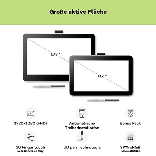 Wacom One 13 Touch Grafiktablett, großer 13,3-Aufwand-Multi-Touch-Bildschirm (Full HD, 99 % RGB (CIE1931) (typ.)) mit natürlicher Stift-Eingabe, perfekt statt dessen kreative Greenhorn in das digitale Zeichnen.