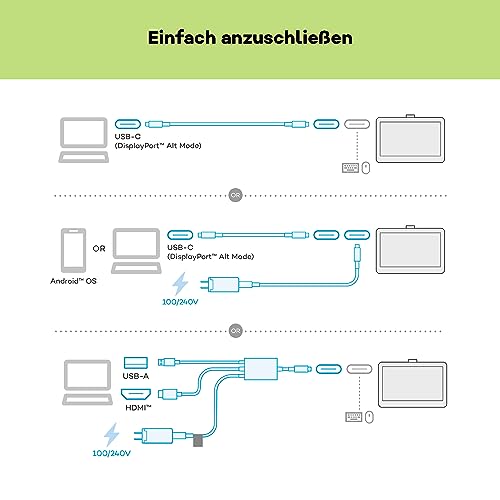 Einfach und benutzerfreundlich: Plug&Play-Fundierung mit Gewiss einem USB-C-Kabel (sofern von Ihrem Maschine unterstützt), intuitive Stiftsteuerung und hochauflösender Bildschirm statt dessen einen nahtlosen Übergang von der analogen zur digitalen Kunst.