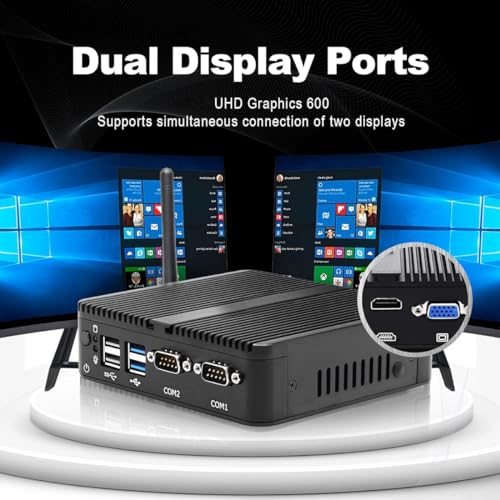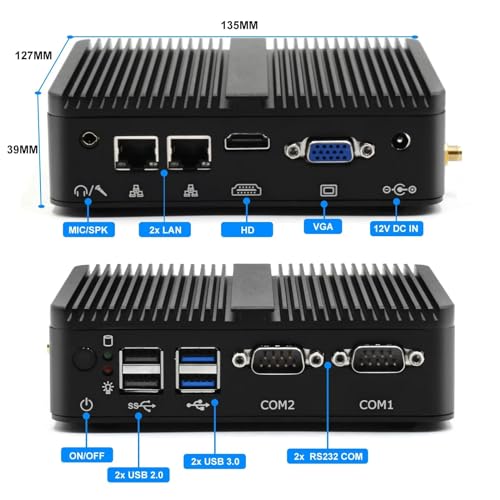 【4K HD + VGA Dual Output】 ➥ Erleben Sie eine verbesserte Arbeitsumgebung mit dem lüfterlosen Industrie PC Mini, der ein HD- und VGA-Dual-Ausgangsdisplay bietet. Sparen Sie Zeit und steigern Sie Ihre Arbeitseffizienz. Genießen Sie eine beeindruckende 4K Ultra HD (UHD) Videowiedergabe. Mit 2 * USB 2.0, 2 * USB 3.0, 2 * RS232 com und 2 * LAN bietet dieser Industrie computer vielseitige Anschlussmöglichkeiten für Ihre Geräte.