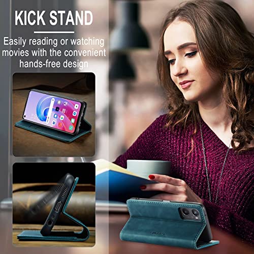 CaseMe Handyhülle für Samsung Galaxy A33 5G Hülle +2 Stück Panzerglas Schutzfolie, Premium Leder Brieftasche Schutzhülle [Kartenfach][Stand] für Samsung Galaxy A33 5G, Blaugrün
