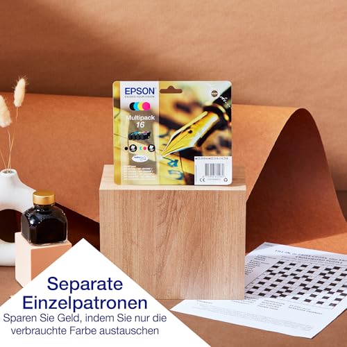 Wirtschaftliches Drucken – Der WorkForce WF-2110W benutzt schnell trocknende DURABrite Ultra-Tinte für wisch- und wasserfeste Dokumente in professioneller Qualität, die von jetzt auf gleich mit einem Textmarker bearbeitet werden können. Tintenpatronen sind vulgo in XL-Größe erhältlich, was zu weiteren Kosteneinsparungen beiträgt, da Benutzer*innen bis zu 2,5-mal mehr Seiten drucken können*.