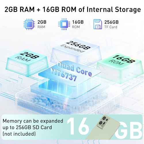 【Quad-Core-Power & Dual-SIM】Genießen Sie reibungslose und schnelle Leistung mit dem leistungsstarken Quad-Core-Prozessor des handy. Die Speicherkonfiguration mit 2GB + 16GB bietet ausreichend Speicherplatz für Ihre Apps und Mediendateien (erweiterbar auf bis zu 128GB). Das 2 + 1-Kartensteckplatzdesign ermöglicht die gleichzeitige Verwendung von zwei SIM-Karten und einer Micro-SD-Karte. Das funktionsreiche handy eignet sich perfekt als persönliches Gerät oder als durchdachte Geschenkoption.