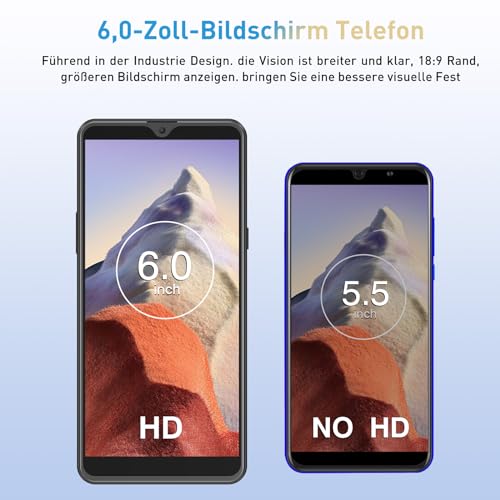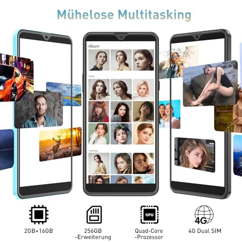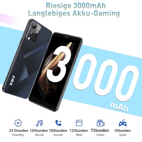 【Leistungsstarkes Werkzeug】Das Smartphone ohne vertrag ist mit einem 3000mAh-Stromspeicher und einem energieeffizienten Quad-Core-Prozessor ausgestattet, der eine volle Nutzungsdauer über den Tag gewährleistet. Der Quad-Core-Prozessor passt die Frequenz automatisch an die Nutzungsszenarien an, optimiert den Stromverbrauch und liefert eine hervorragende Leistung. Mit 2GB RAM läuft das Telefon mühelos mehrere Apps