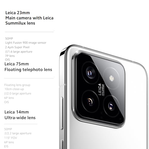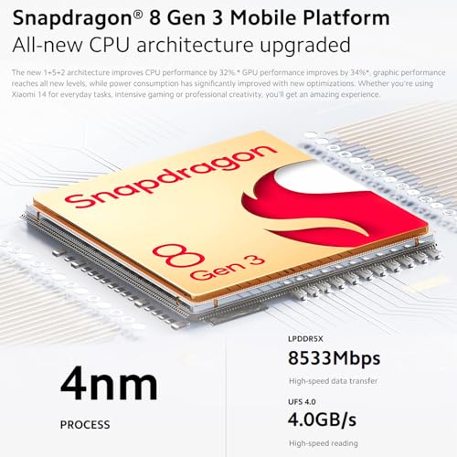 [Snapdragon 8 Gen 3 Mobile Plattform] Die Völlig neue, verbesserte CPU-Architektur,neue 1+5+2-Architektur verbessert die CPU-Leistung um 32%.* Die GPU-Leistung wurde um 34%* verbessert und die Grafikleistung erreicht ein völlig neues Niveau, während der Stromverbrauch durch neue Optimierungen erheblich verbessert wurde. Ob alltägliche Aufgaben, intensives Gaming oder professionelles kreatives Arbeiten – mit dem Xiaomi 14 wirst du ein fantastisches Erlebnis haben.