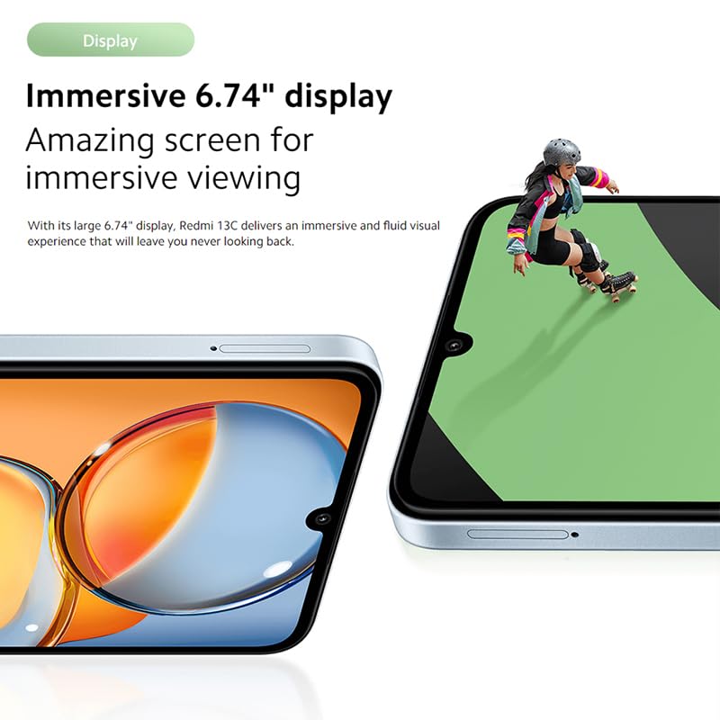 Immersive 6.74″ display: Amazing screen for immersive viewing With its large 6.74″ display, Redmi 13C delivers an immersive and fluid visual experience that will leave you never looking back.