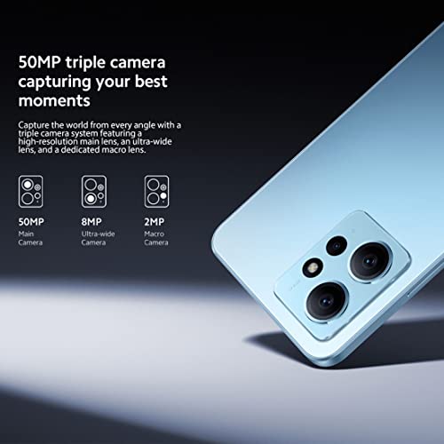 Dreifachkamera mit 50 MP AI Das Redmi Postanschrift 12 ist mit einer Dreifachkamera mit 50 MP ausgestattet, die die Welt nicht mehr da jedem Winkel mit einem Dreifach-Kamerasystem erfasst, das ein hochauflösendes Hauptobjektiv, ein Ultraweitwinkelobjektiv und ein spezielles Makroobjektiv enthält.