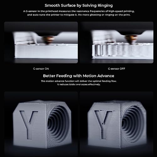 🔝 Zuverlässige Druckqualität: Ein G-Sensor im Druckkopf misst und mildert die Resonanzfrequenzen des Hochgeschwindigkeitrucks. Keine Geisterbilder oder leffekte mehr auf dem Auruck. Die genaue Z-Achsen-Positionierung reduziert effektiv die Z-Streifenbildung. Der Rahmen aus Aluminiumlegierung mit Unibody-Druckgussteilen gewährleistet einen gleichmäßigen Auflage bei hoher Geschwindigkeit und die Druckqualität ist die ganze Zeit über ausgezeichnet.