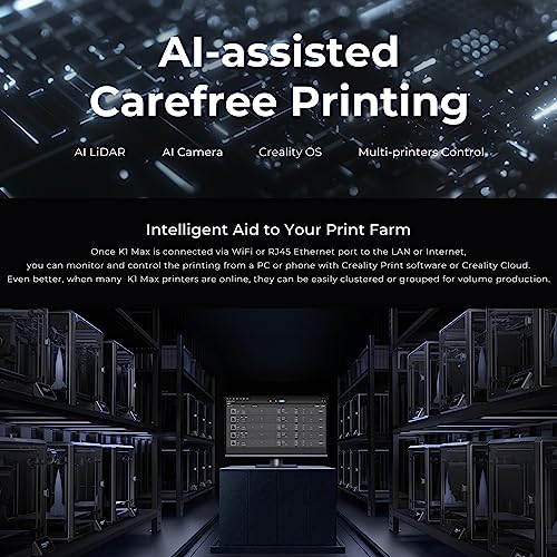 🔝 KI-unterstütztes sorgenfreies Drucken: Der LiDAR mit einer Zerrüttung von 1 μm scannt die erste Schicht selbstständig. Der Druckvorgang wird angehalten und Sie werden sofort informiert, wenn etwas schief geht. Und K1 Max verwendet eine KI-Kamera, um Spaghetti-Fehler, Fremdkörper, Ablagerungen usw. zu überwachen. Sie benachrichtigt Sie, wenn ein Fehler auftritt. Es unterstützt auch Echtzeitüberwachung und erstellt Zeitraffer zum Teilen.