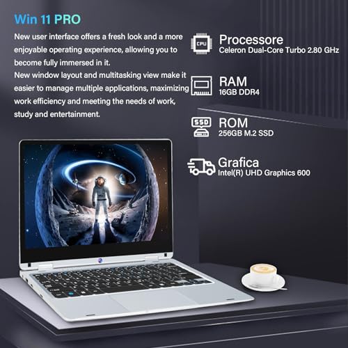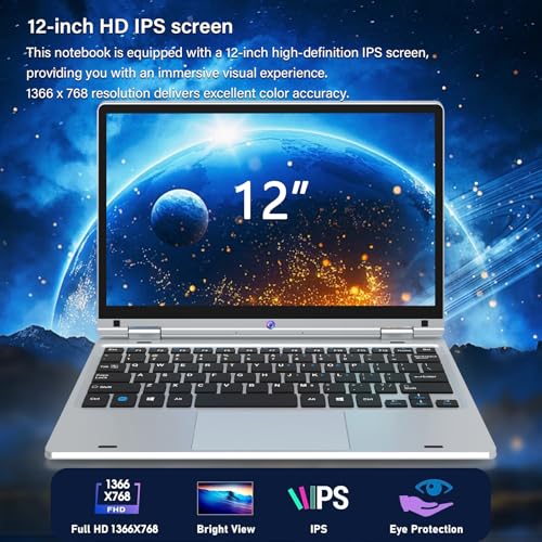 [STARKE PRODUKTIVITÄT]: Laptop 12 Zoll mit WIN 11 Pro ist mit Celeron N4020 DUAL-CORE-Prozessorleistung ausgestattet und liefert unübertroffene GeschWINdigkeit. Führen Sie mehrere Anwendungen, Browser-Tabs und Videos reibungslos aus, sorgen Sie für schnelleres Multitasking und genießen Sie packende Unterhaltung und Spiele, Arbeit und Studium.