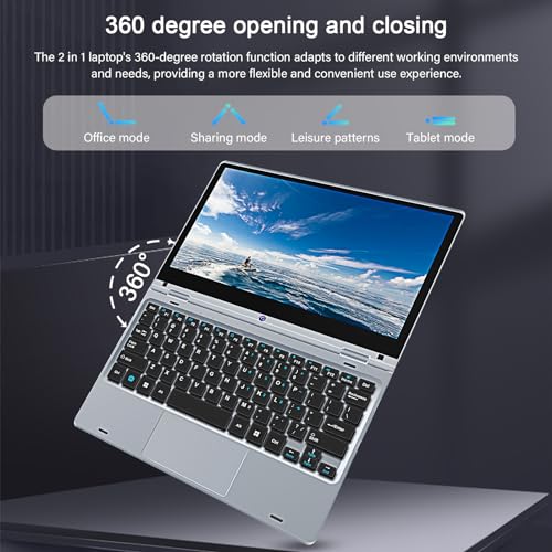 XUEMI 12 Zoll FHD Metallgehäuse Laptop, 360°-Flip Notebook, 16GB DDR4 256GB SSD Win 11 Pro Intel Celeron N4020 PC (Up to 2.8Ghz), 2 in 1 Touchscreen Laptop mit 2G/5GWiFi, BT5.0, Camera, USB3.0×2, HDMI