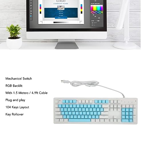 [Schneller und reaktionsschneller mechanischer Schalter] Diese Gaming-Tastatur verfügt mittels mechanische Schalter, die eine hervorragende Tipper- und Spielleistung andienen. [Vibrierender RGB-Hintergrundbeleuchtungsmodus] Die RGB-Hintergrundbeleuchtung dieser Tastatur erzeugt coole und auffällige visuelle Effekte und verbessert die Leistung der Spiel- und Büroatmosphäre. Ausarbeitung