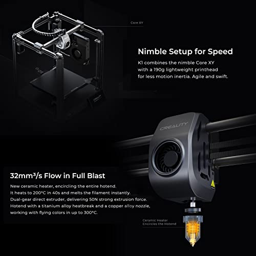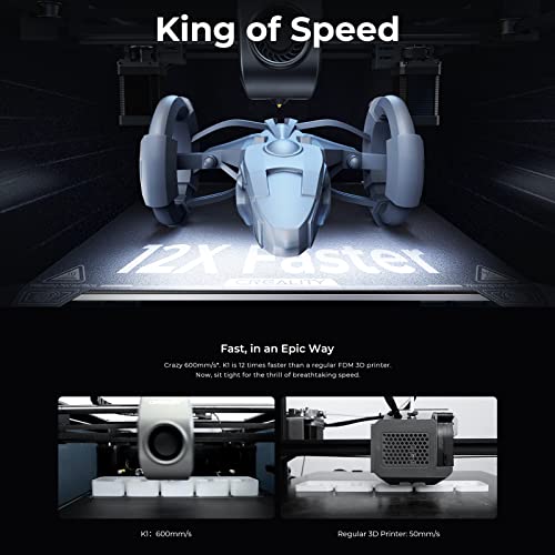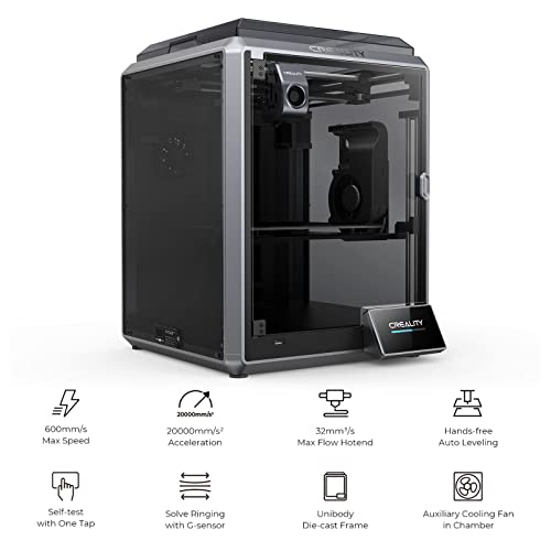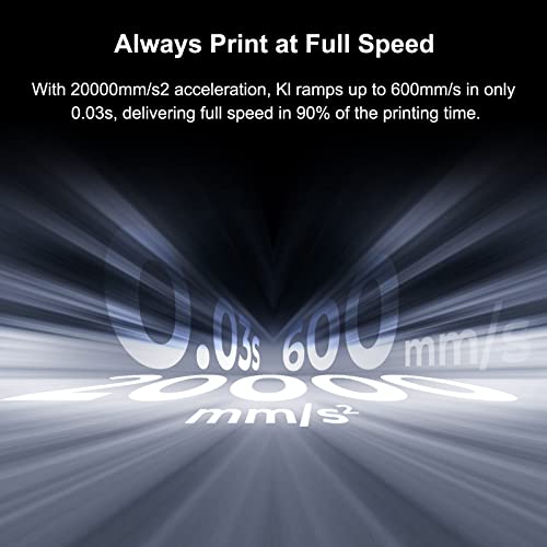 ♦ K1 Hochgeschwindigkeits-3D-Drucker: 12-mal schneller, trotzt Einschränkungen K1 erreicht 600 mm/s* in trotzdem 0,03 s basierend auf einer Beschleunigung von 20000 mm/s². Er kann so produktiv sein wie mehrere 3D-Drucker zusammen. Konkludieren Sie mit dem flinken Core XY mit einem 190 g leichten Druckkopf, agil und schnell. D