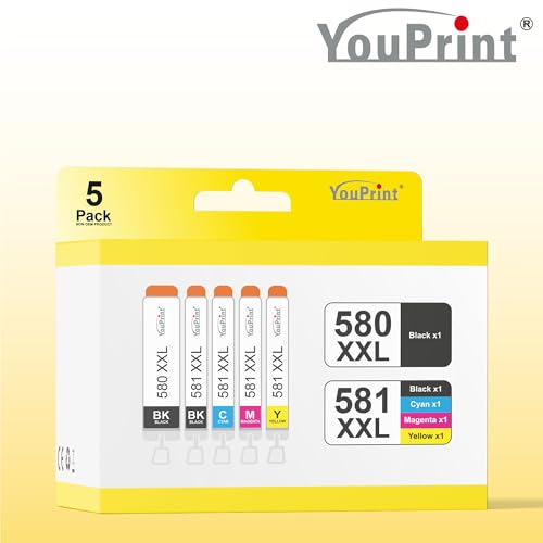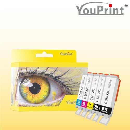 YouPrint Bundle TS6350 Tintenstrahldrucker Multifunktionsgerät (Drucker, Scanner, Kopierer) mit 15 kompatiblen YouPrint Druckerpatronen für Canon 580 581