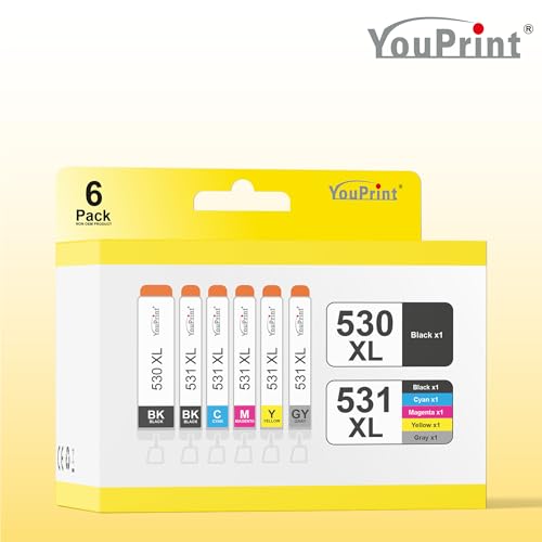 youprint Multifunktionsdrucker Bundle TS8751 (Drucker, Scanner, Kopierer) inklusive 6 kompatiblen Druckerpatronen passend für Canon 530 531 XL