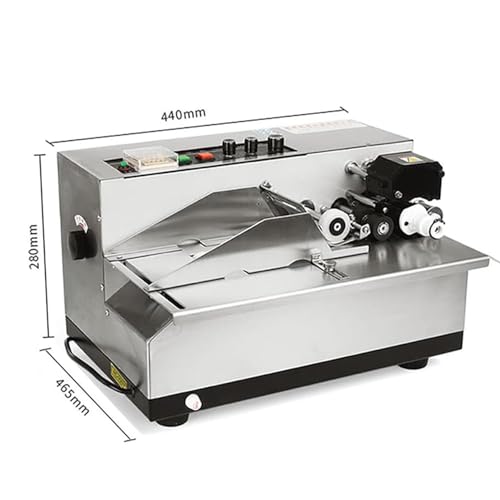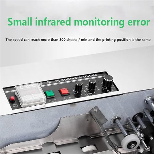 ★【Produktparameter】Leistung: 180 W, Größe des Volltintenrads: 35 x 15 mm (zwei in Kombination verwendet), Druckposition: einseitig 60–250 mm kann beliebig eingestellt werden, Druckgeschwindigkeit: bis zu 300 Mal/Minute, minimales Druckobjekt: 50 x 30 mm, maximales Druckobjekt: 500 x 200 mm, maximale Anzahl Druckzeilen: 10 Zeilen, bis zu 11 Zeichen pro Zeile, Schriftgröße: 2 x 3 mm