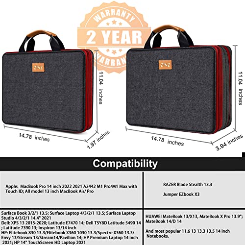 ✅ Größe und Kompatibilität – Innenmaße: 13,78 x 10,04 x 1,57/3,74 Zins; Kompatibel mit MacBook Pro 14 zoll 2022 2021 A2442 M1 Pro/M1 Max with Touch ID; All model 13 zoll MacBook Air/ Pro; Surface Book 3/2/1 13,5, Surface Laptop 4/3/2/1 13,5; Dell Latitude 14;Elitebook 13,3/Spectre X360 13,3/Envy 13/Stream 13/Stream 14/Pavilion 14; ThinkPad X1 Carbon, IdeaPad 13/14 und die beliebtesten 13-14 Zins Notebooks Chromebooks Tablets.