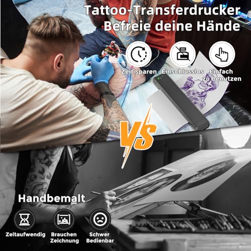 Zoolion Tattoo Drucker Bluetooth, Tattoo Maschine Set mit 10 Tattoo Transfer Papier, M08F Tattoo Zubehör für Tattoo Künstler, Tattoo Stencil Drucker Kompatibel mit iPhone Smartphone iPad PC
